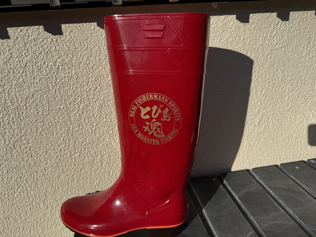 マリンブーツロング レッド【とび島魂・文字ゴールド】(納期約3週間)